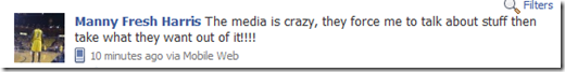 Harris’ Facebook status from after the game tells you just about everything you need to know about the situation.