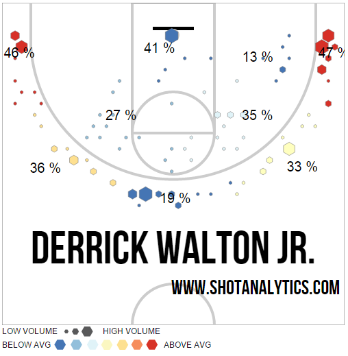 - Catch-and-shoot: Walton posted a 56.3 eFG% on catch and shoot situations according to Synergy Sports. According to Shot Analytics, he made 47% of his threes from the corners which were obviously his favorite spot, and a spot where almost every attempt is of the catch and shoot variety.