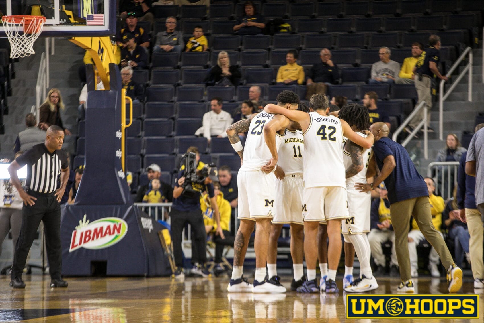 Dusty May met with the media on Monday to discuss Michigan’s exhibition win at St. John’s and the progress his group has made in the preseason.