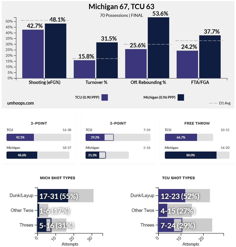 It was the second time in three games this season that the Wolverines won while scoring less than a point per possession, a feat they accomplished only 4 times total last year.