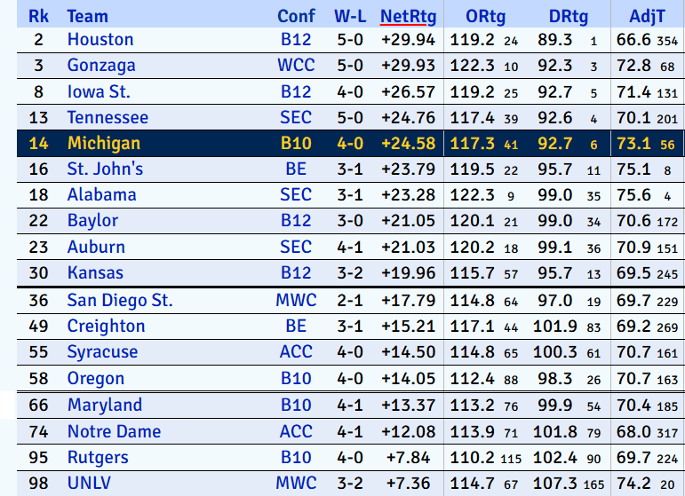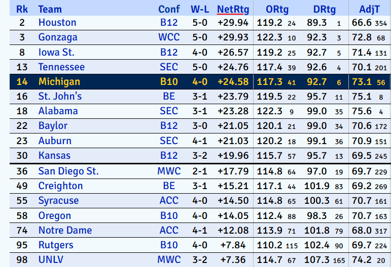 Michigan’s first two opponents — San Diego State at 36th and Auburn at 23rd — are roughly in the middle of the pack, but if Michigan plays well in its opening games, it is likely to face an elite opponent in the third game.