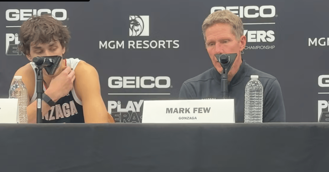 Mark Few and Braden Huff were on the podium after Michigan trounced Gonzaga in the 2025 Players Era Championship.