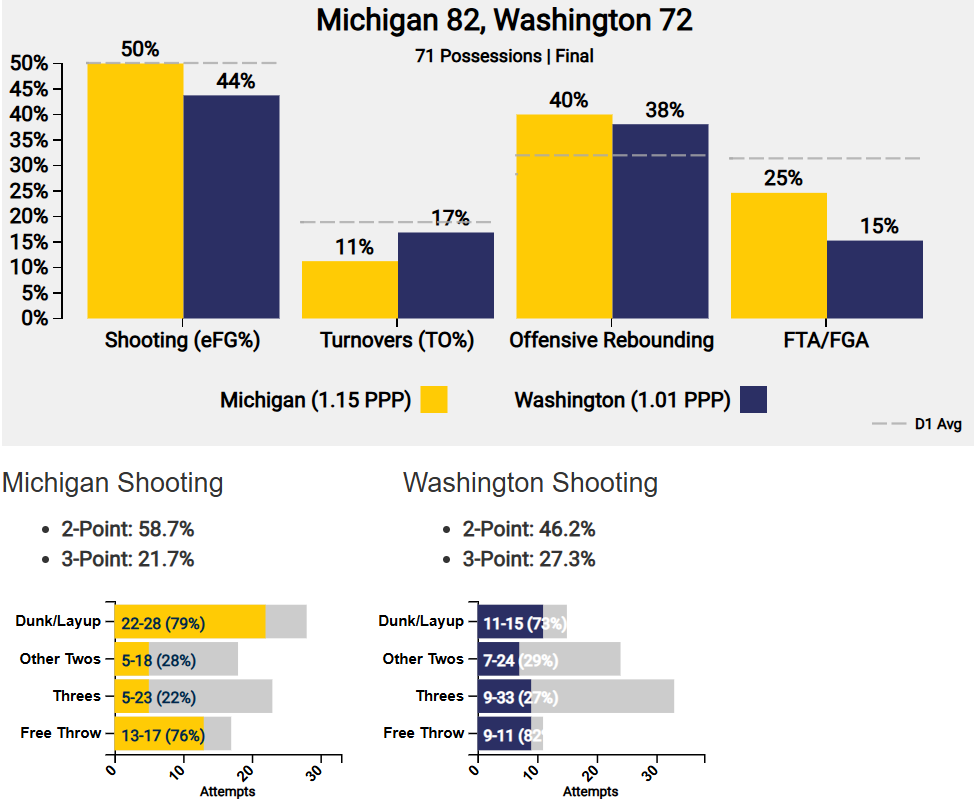 The foul trouble and Michigan’s many trips to the line allowed them to stay just ahead of Washington’s pace all game long and the Huskies shot themselves in the foot far too many times.