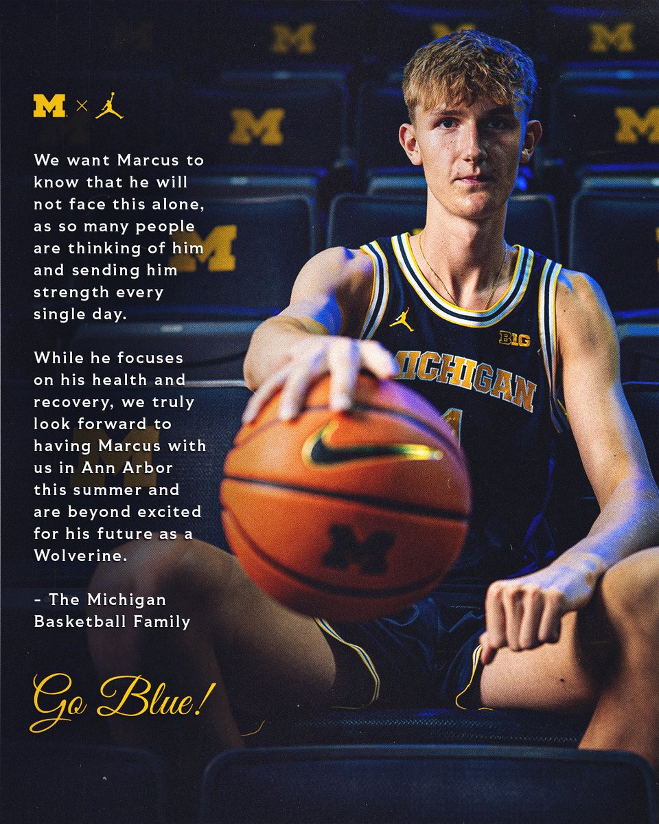 “We want Marcus to know that he will not face this alone, as so many people are thinking of him and sending him strength every single day,” the statement from the Michigan basketball family said. “While he focuses on his health and recovery, we truly look forward to having Marcus with us in Ann Arbor this summer and are beyond excited for his future as a Wolverine.”