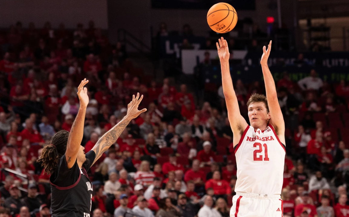 The Huskers are ranked 11th nationally in 3-point volume (51% of attempts) and 360th in 3-point volume allowed (49.7% of attempts). In short, roughly half of the shot attempts in any Nebraska game are threes — sometimes much more.