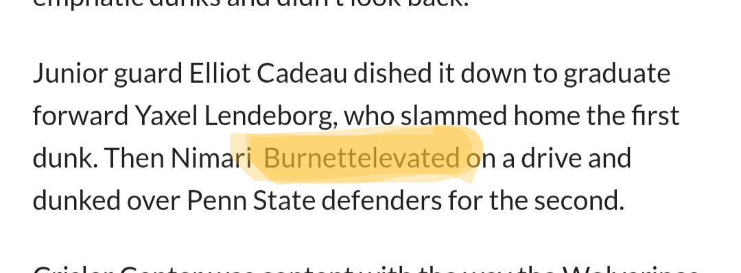 Burnett started the avalanche of scoring by making a 3-pointer on the Wolverines’ second possession of the game. Then, midway through the first half, he notched a two-minute stretch where he slammed home three dunks. With 15 first-half points, Burnett set the tone from deep and also down low.