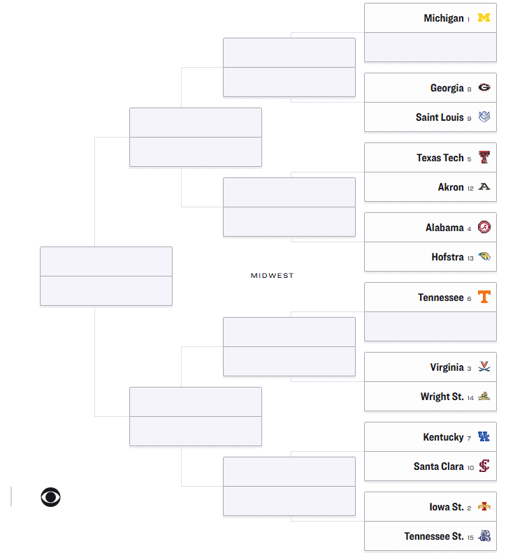The Wolverines are the No. 1 seed in the Midwest regional and would face either No. 8 Georgia or No. 9 Saint Louis in the round of 32.
