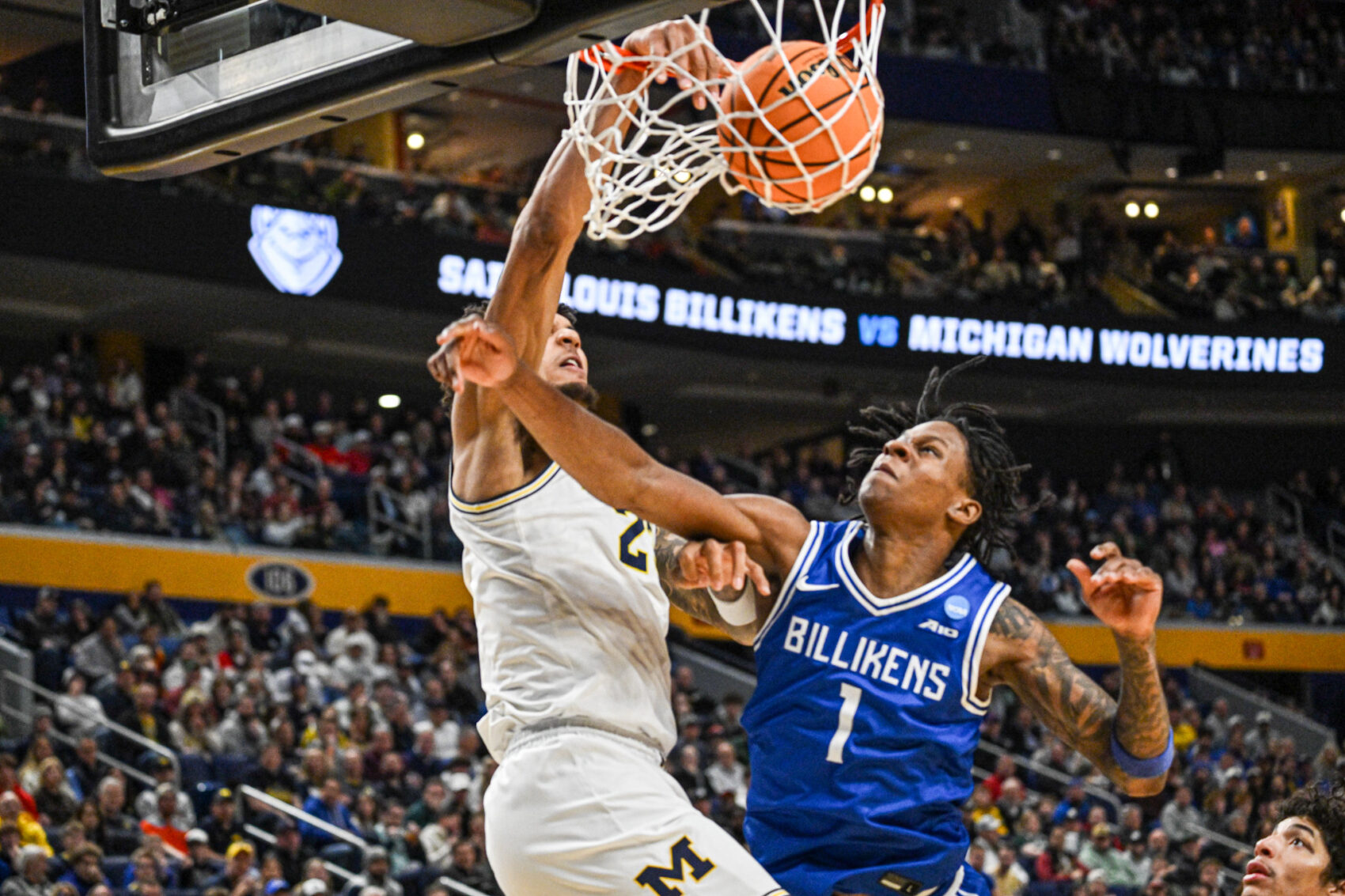 The Wolverines were able to keep Saint Louis at arm’s length for most of the night, then delivered a knockout blow with a 16-3 run midway through the second half, headlined by a highlight poster dunk from Yaxel Lendeborg that will be the lasting image of the weekend.