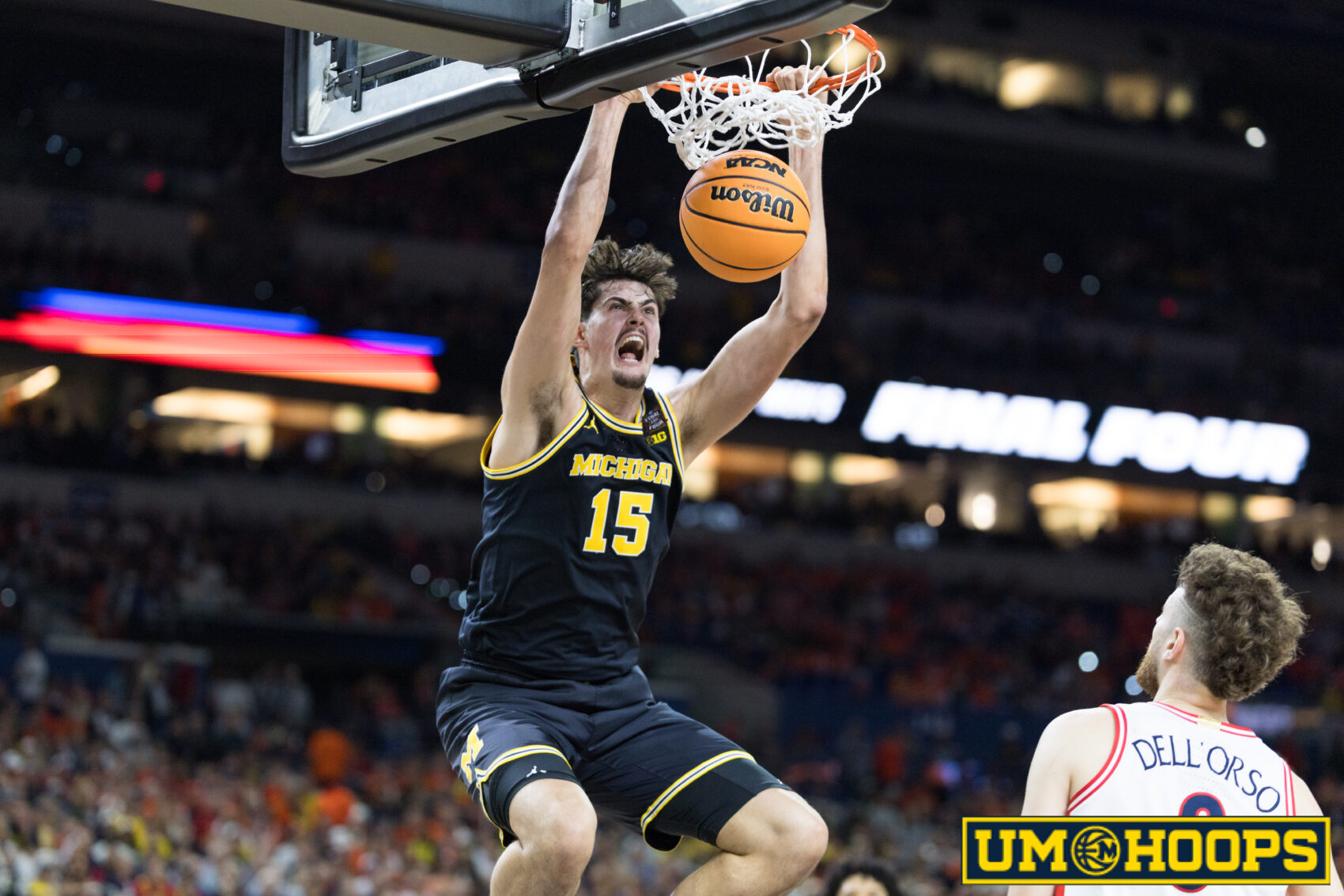 It didn’t matter that the best player in the sport could barely walk; Michigan was inevitable. Aday Mara and Morez Johnson Jr. were both whistled for two first-half fouls, too, but played their way through it and dominated.