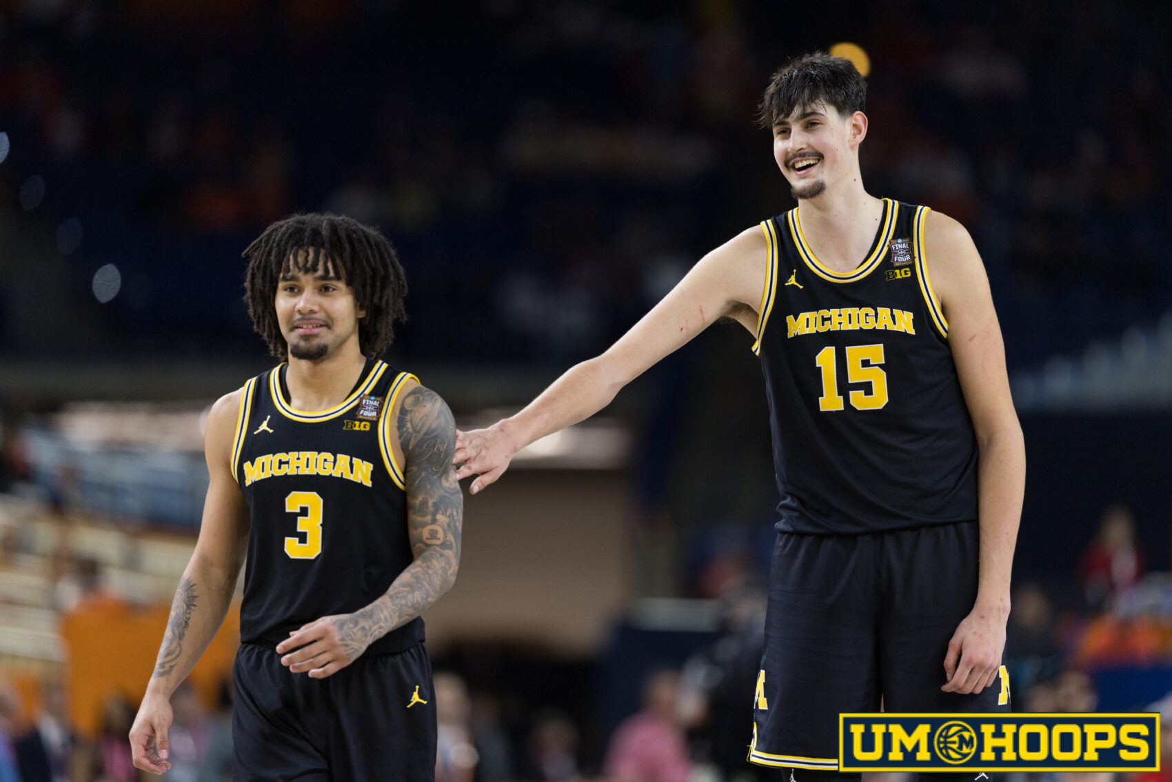 Dusty May was joined on the podium by Elliot Cadeau, Aday Mara and Trey McKenney after Michigan’s win over Arizona on Saturday night.