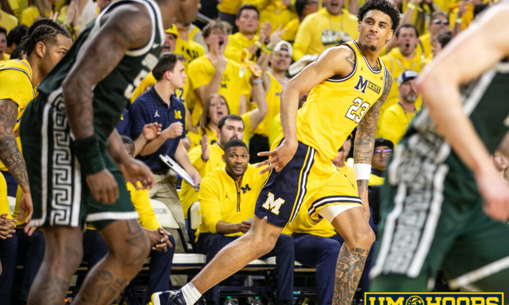 Dusty May and Michigan players met with the media after Michigan’s Sweet Sixteen loss to Auburn.