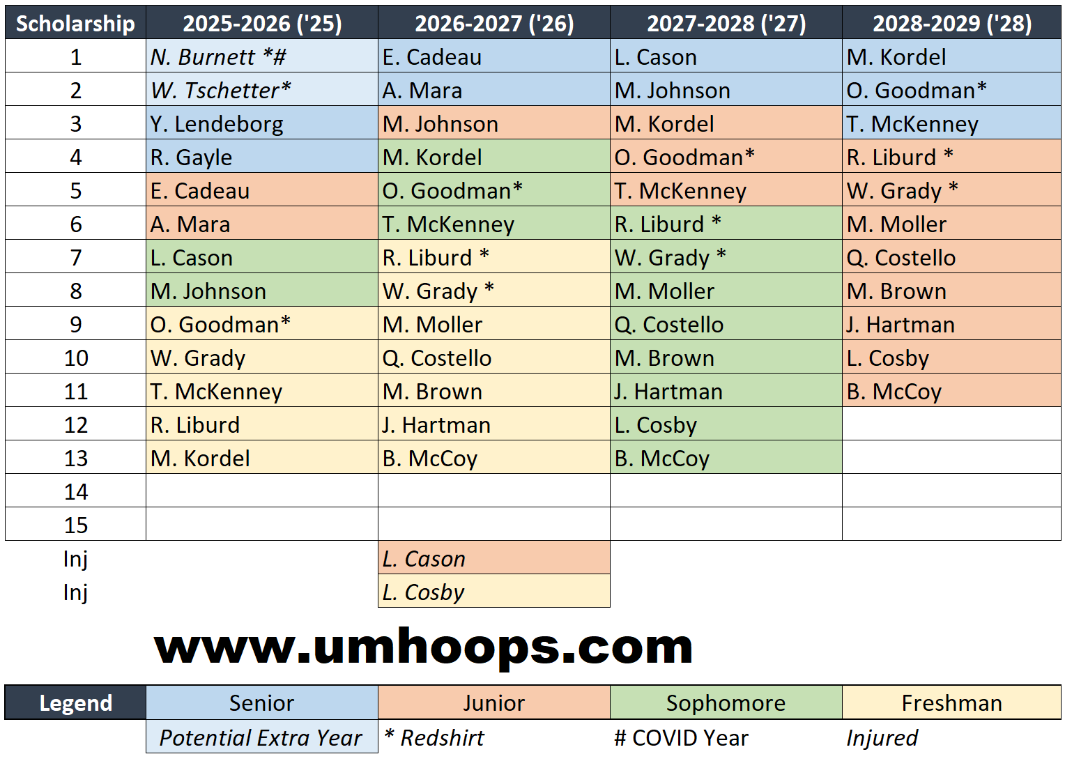 This is an unofficial listing; this website is in no way connected with the University of Michigan or the Michigan Basketball team.